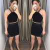 Two Piece Spaghetti Strap Beaded Sheath Black Homecoming Dresses,BD0024