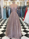 Fashion Sparkly Sequin V-neck Sleeveless A-line Prom Dresses, PD00086