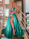 Green Satin Strapless Slit Cheap Fashion Prom Dresses.PD00266